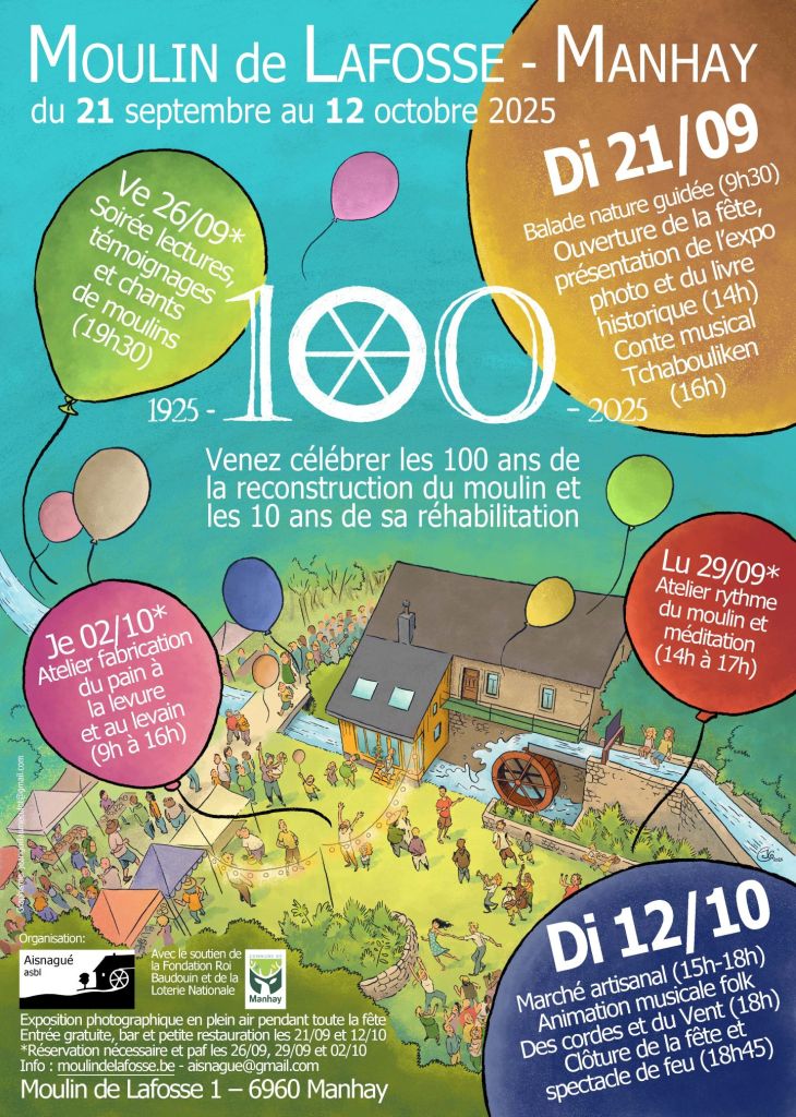Notre traditionnel marché artisanal sera en version augmentée cette année, car c’est aussi la clôture des festivités du centenaire de la reconstruction du moulin, et des 10 ans de sa réhabilitation !