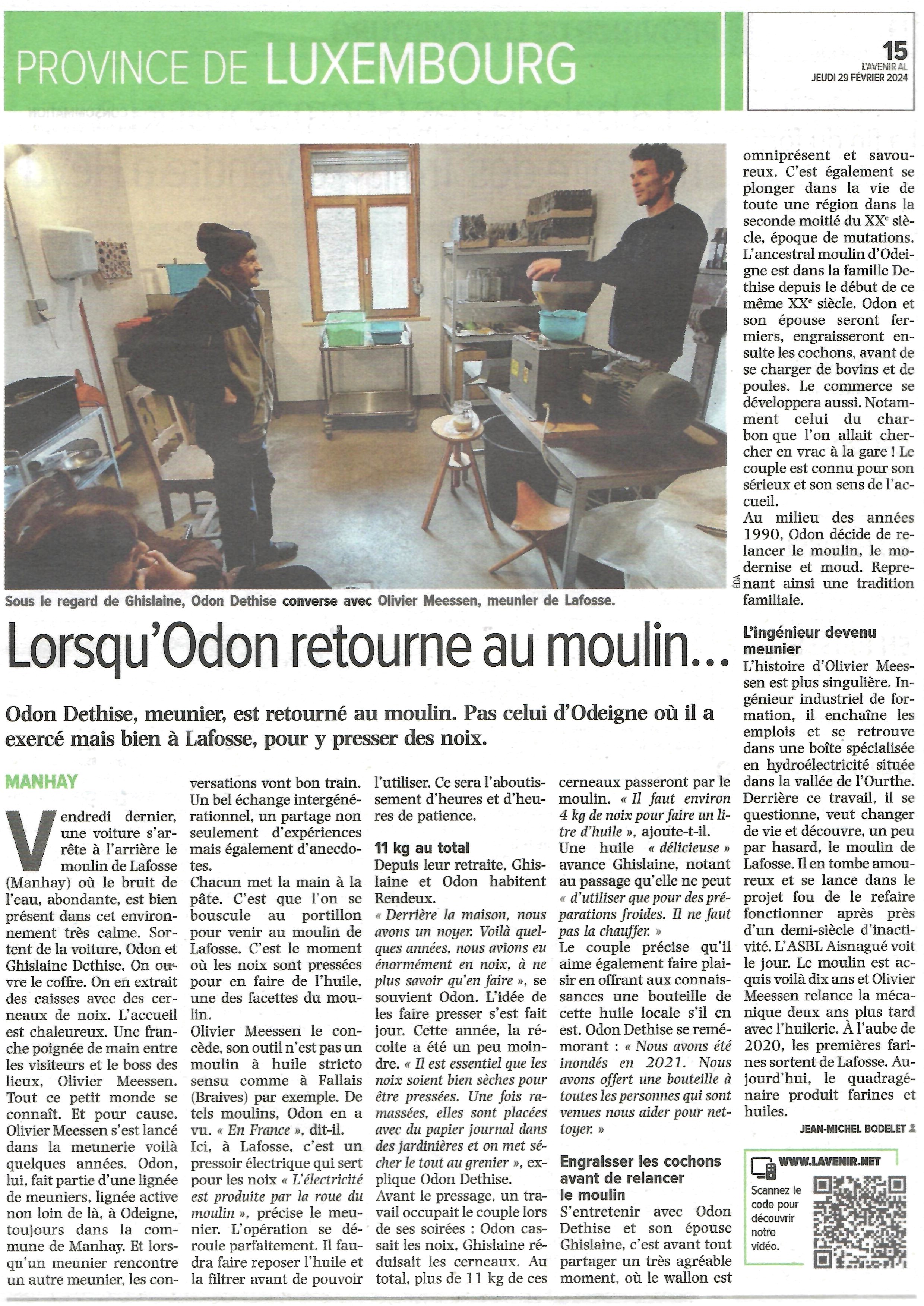 (émission en wallon enregistrée en mars 2016, le reportage sur Manhay commence à 1:40 et sur le moulin de Lafosse à 9:40)